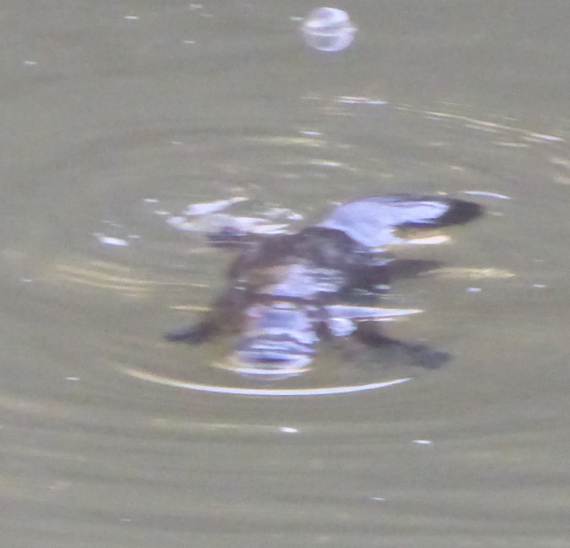 Shortly after crossing the Swing Bridge and the sign honouring Geoff Treacy (the originator of the clean -up project, and as it turns out a resident of the house across the street from us) we crossed with a couple of walkers. The older of the two advised - with I think a French accent - that there was a platypus in Frawleys Pool.